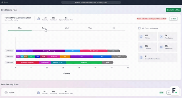 Our space management software helps you design a hybrid working plan tailored to your business goals, team structures, and employee needs. Simply set your parameters, and our intelligent platform generates the optimal work pattern – maximizing collaboration, flexibility, and space efficiency.